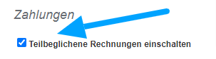 eFakturierung bietet Ihnen die Möglichkeit, Zahlungen zu importieren, die direkt von der Bank exportiert wurden. Stellen Sie sicher, dass das Feld Bankzahlungen aktiviert ist: